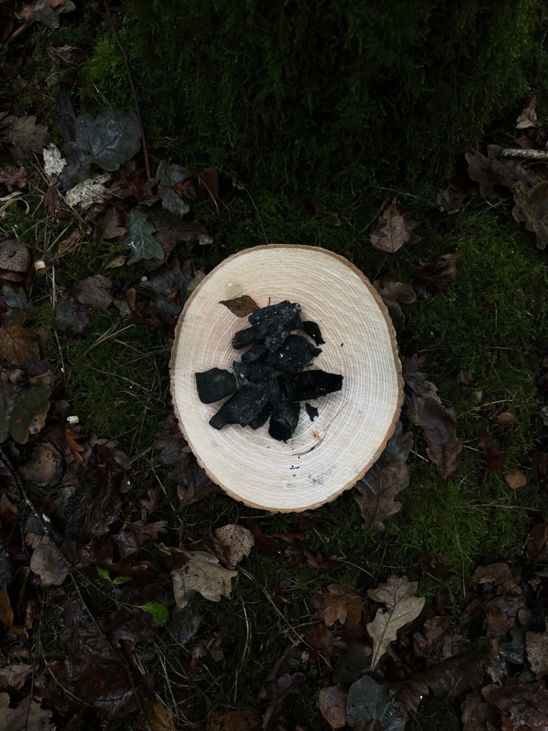 insects, bacteria, and fungi. It will practically become absorbed back into the forest, broken down, and reborn again. Since this ash got taken away and turned into this nonhuman plate, the next question arises naturally: What would a tree want on a said plate? What can I put in these plates to replace the resources we took away from the forest?